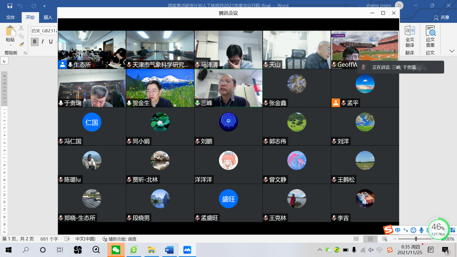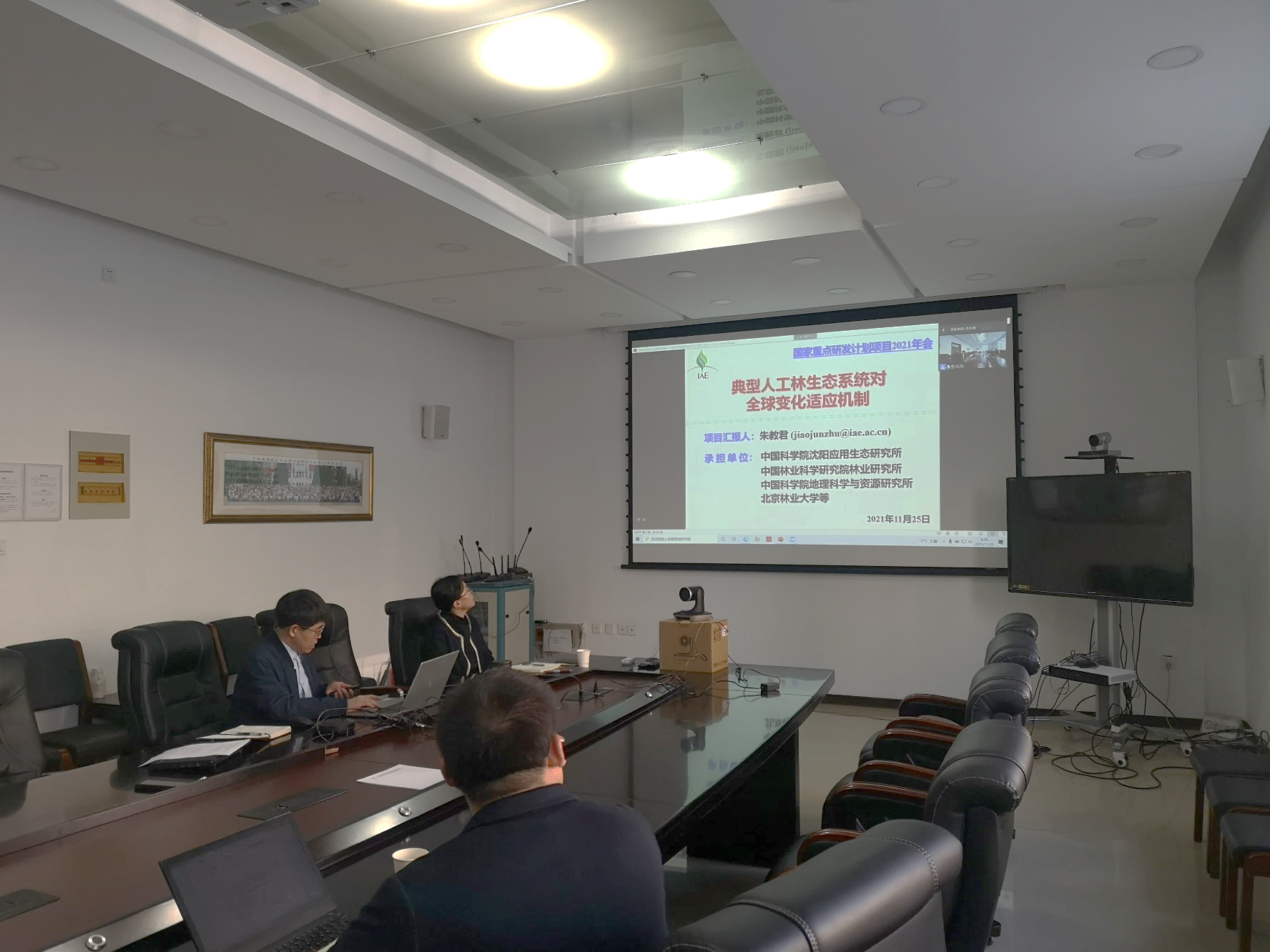 2021年11月25日,由中国科学院沈阳应用生态研究所(以下简称:生态所)牵头的国家重点研发计划项目"典型人工林生态系统对全球变化适应机制"召开2021年年度会议。会议采取线上与线下结合的方式举行。项目专家组组长中国科学院地理科学与资源研究所于贵瑞院士、项目责任专家中国林业科学研究院刘世荣研究员、项目管理专家科技部高技术研究发展中心张峰处长、项目专家中国科学院亚热带农业生态研究所王克林研究员、北京大学贺金生教授、美国克莱姆森大学王高峰教授、科学技术部基础研究司郭志伟研究员、中国科学院半导体研究所冯仁国研究员、中国科学院前沿科学与教育局段晓男处长出席了会议。