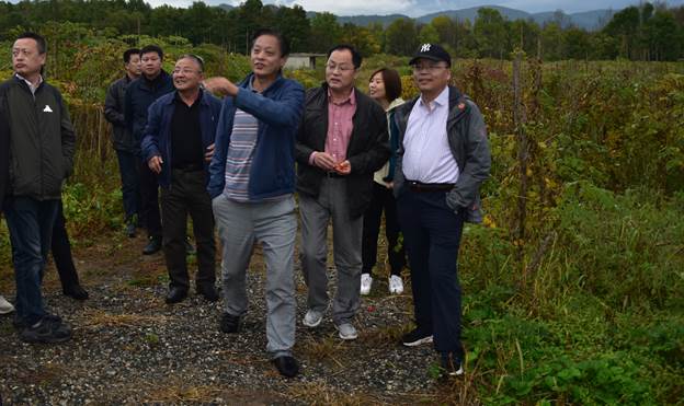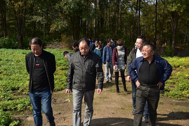 在佳木斯大学农林实验实习基地,调研组参观了中国最北部的软枣猕猴桃种质圃,刘德江教授介绍了种质圃建设的目的、规模以及取得的成绩,调研组则就吉林森工多次南下引种的失败教训进行了总结。