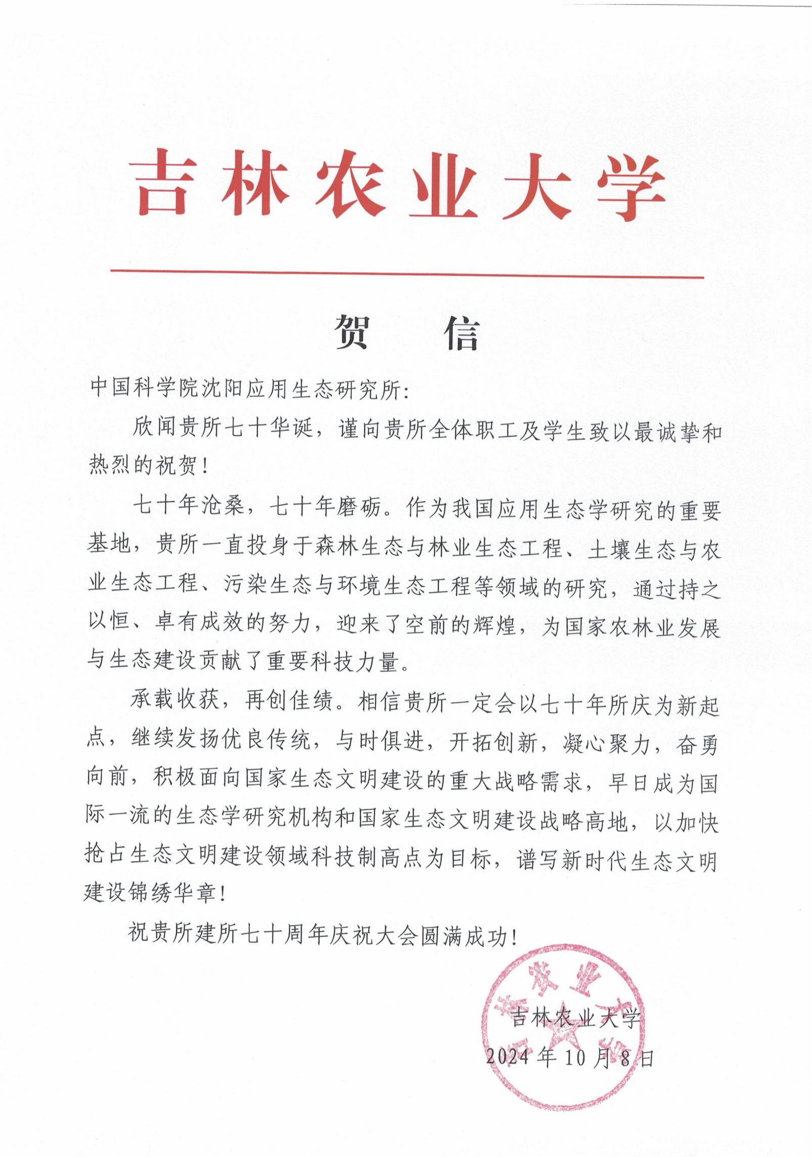 贺信--吉林农业大学
