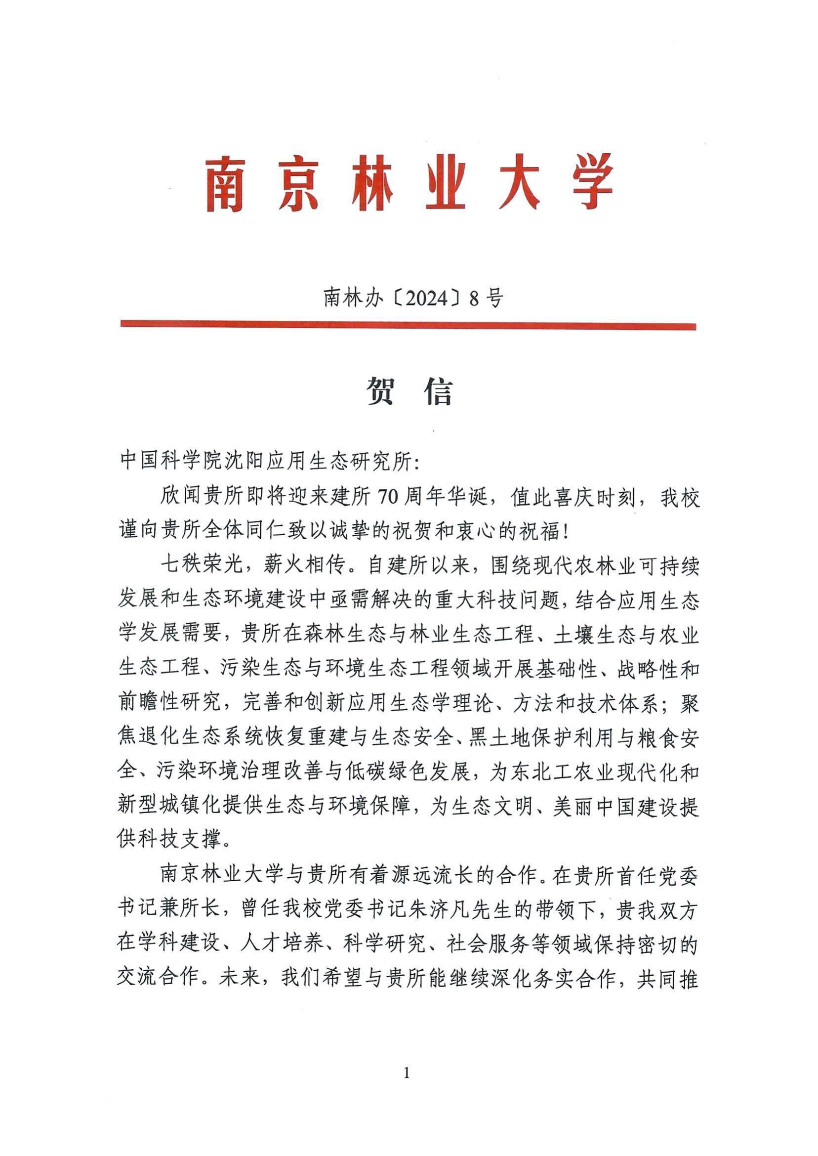 贺信--南京林业大学