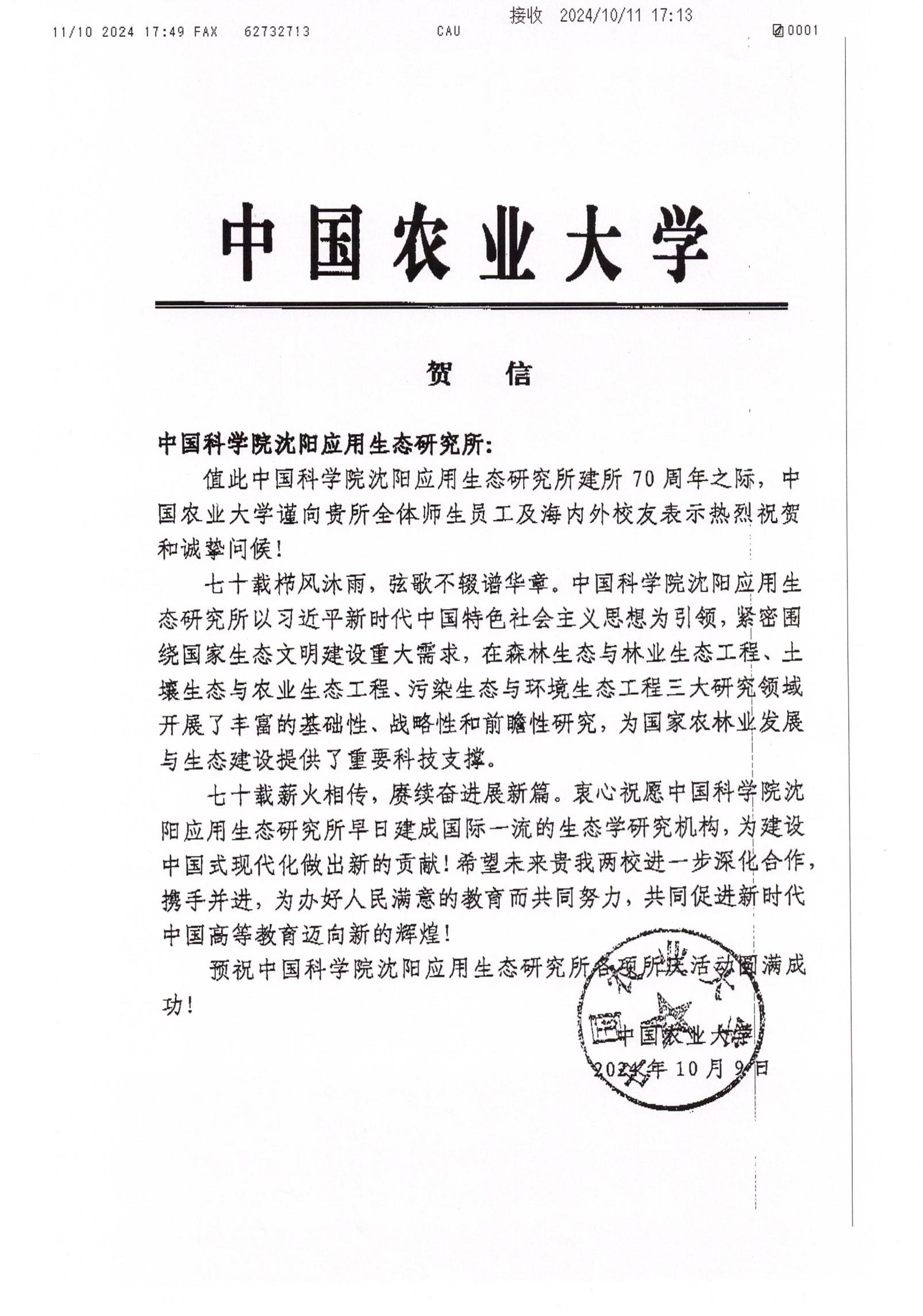 贺信--中国农业大学