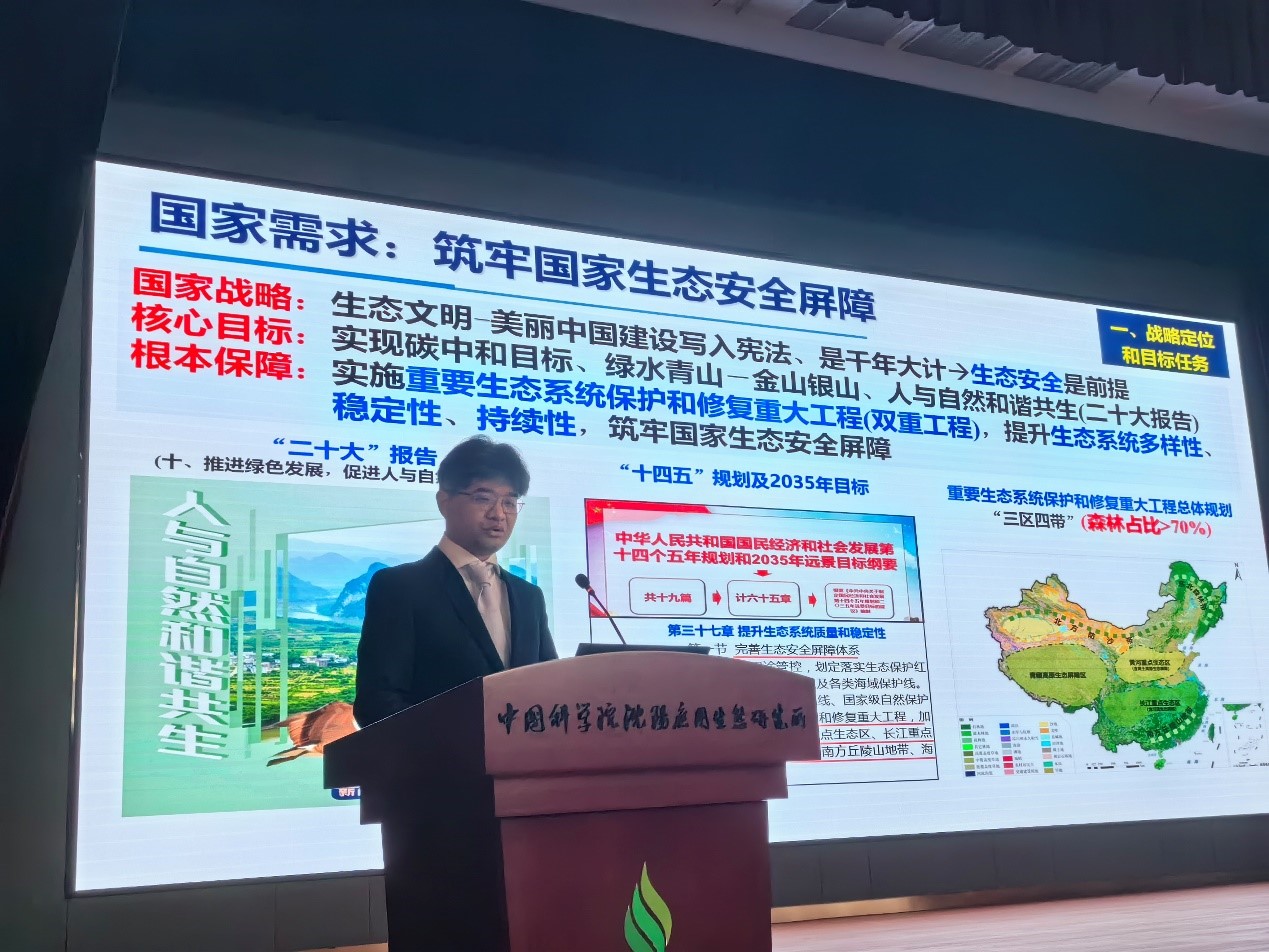 潘韬代表中国科学院发展规划局首先讲话,他表示重点实验室经过很长时间完善打磨,最终获批建设。按照院统筹布局,实验室重点开展森林生态保育理论、培育技术、森林生态屏障功能提升等研究,抢占森林生态与保育科技制高点。今天召开学术委员会会议,请各位委员对实验室未来建设发展,包括重大任务选题、人才队伍建设、建设体制机制等问诊把脉,为实验室未来发展出谋划策,提供宝贵的咨询建议。任小波代表中国科学院可持续发展研究局讲话,表示在沈阳生态所和中国林科院共同努力和建设下,完成了实验室“定事、定人、定策”。后续希望两家单位继续努力,充分体现“所为基盘,室为高地”,发挥两家单位强强联合优势。希望学术委员会在后续实验室建设中更多给予指导和支持。程强代表国家林业和草原局科技司讲话,表示国家林草局党组高度重视森林生态与保育重点实验室建设工作,多次与中国科学院有关部门沟通,全面支持实验室重组工作。下一步希望实验室学术委员会对实验室建设发展提出更多好的意见建议,希望重点实验室聚焦国家战略需求,进一步服务于“三北”工程、国土绿化,生态修复等战略,推进实验室服务行业实际需求,全力打造国际一流创新平台。储富祥代表共建单位中国林科院致辞,他表示,面向国家生态建设重大需求,重点实验室建设恰逢其时。围绕实验室目标、定位,将与沈阳生态所进一步强化合作,将实验室建成支撑有力、运行规范、国际一流的重点实验室。未来将在优势互补上持续发力,共建研究团队、共享研究平台,共同承担科研项目,发挥合作优势。谋划、取得一批重大标志性成果,彰显实验室地位、作用和影响力。加强领军人才特别是青年拔尖人才培养,支撑实验室建设。创新管理体制机制,扎实推进深度融合,实现共建共享共赢。希望学术委员会对实验室建设多多把关,提出指导性意见。朱教君代表研究所致辞,对各位院士、领导与会表示热烈欢迎,对长期以来对研究所发展和实验室建设给予的关心和支持表示衷心感谢。并表示重点实验室自2021年开始启动组建,历经3年时间获得院党组批准建设,研究所非常珍惜组建机遇。希望通过学术委员会对实验室把关定向,提出宝贵意见建议,顺利纳入全国重点实验室序列。沈阳生态所与中国林科院具有雄厚优势基础,组建期探索了跨部门联合共建机制,在国内外领域形成了突出影响力和竞争力,在野外平台联网研究、重大原创成果、重大任务、人才培养等多方面优势互补。未来一定可以将实验室建成森林生态与保育领域国际一流实验室。