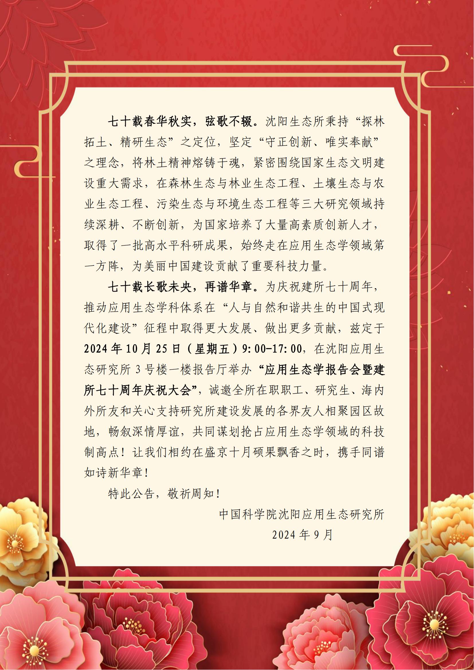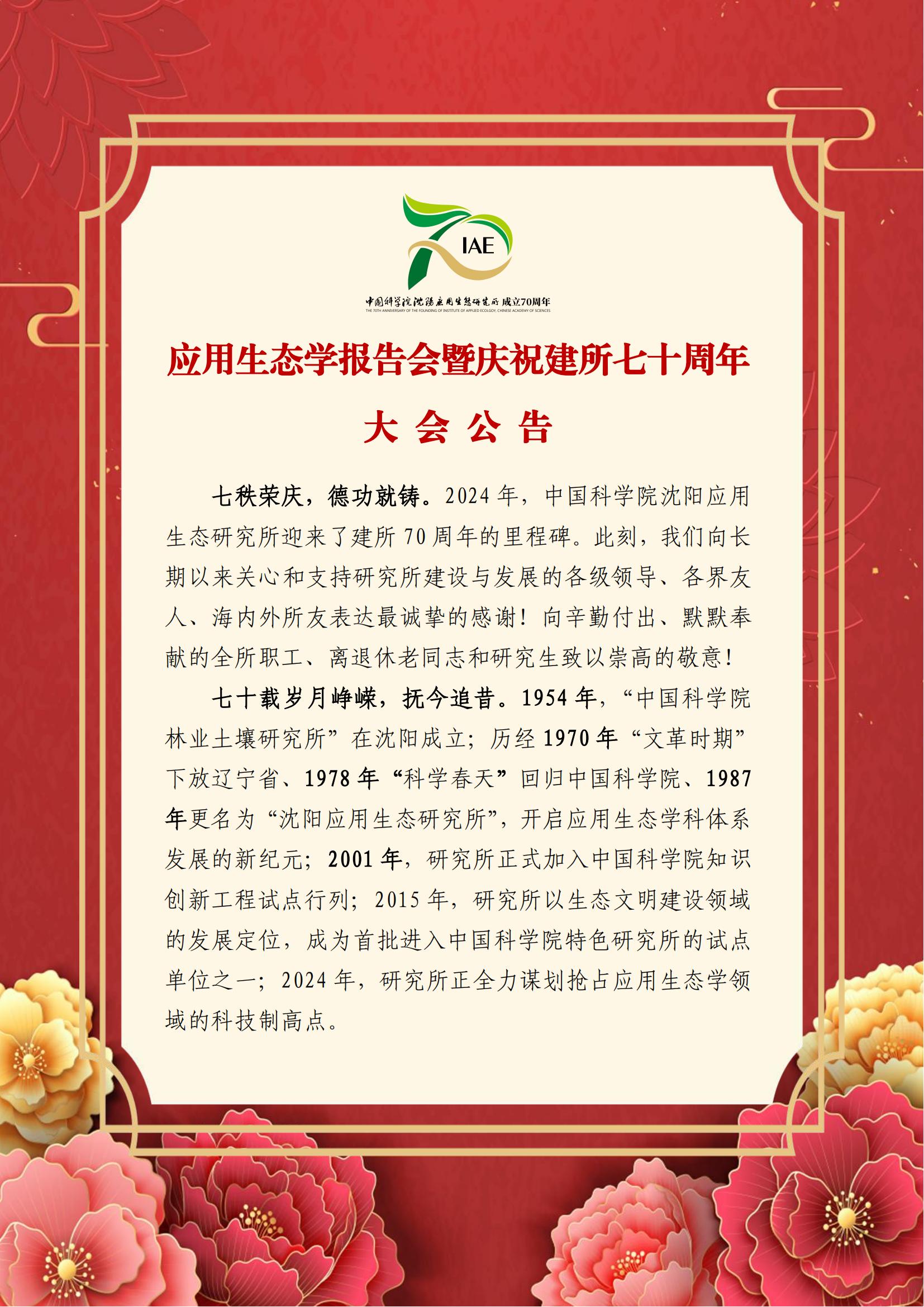 应用生态学报告会暨庆祝建所七十周年大会公告