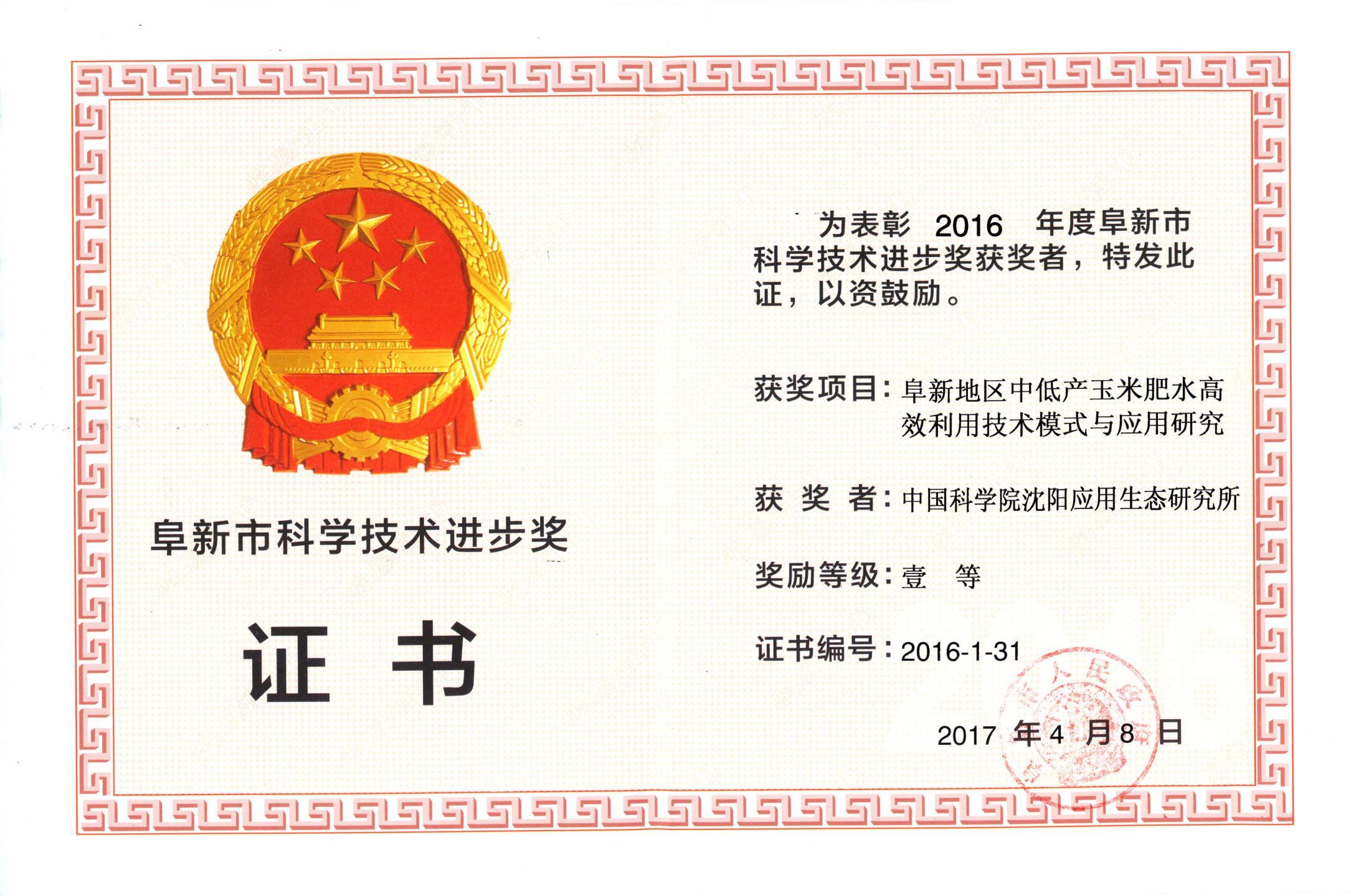 2016辽东山区-中科院科技促进发展奖