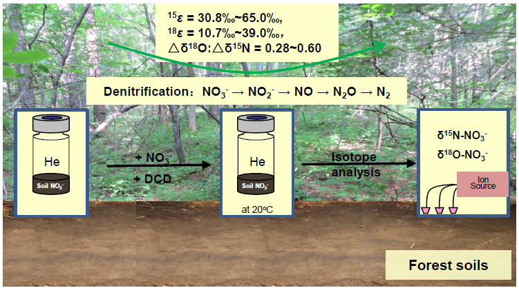 以上研究成果以“High nitrogen isotope fractionation of nitrate during denitrification in four forest soils and its implications for denitrification rate estimates”为题发表在Science of the Total Environment期刊(2018)。相关工作得到了中国国家重点研发项目、中科院先导专项(B)、国家基金委、中科院重点科技前沿项目和中国科学院热带森林生态学重点实验室开放课题的支持。