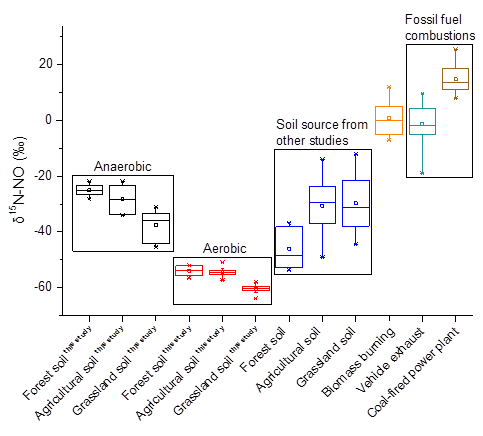 大气灰霾问题越来越受到人们的关注,不仅污染生态环境,而且严重威胁人类健康。硝酸盐是灰霾的主要组成成分,其前提物一氧化氮(NO)排放的不断增加,是加重灰霾问题的主要原因之一。NO不仅影响空气质量,还控制着臭氧的产生进而影响大气的氧化能力,在大气化学中起重要作用。为了减少环境污染,解析NO的排放源和减少其排放量,成为当今研究的重要任务。近年来,氮稳定同位素( δ15N)技术逐渐被应用于解析大气含氮污染物的来源。土壤是继化石燃料燃烧后NO排放的的第二大源,然而对于土壤产生的δ15N-NO研究仍十分有限,这增加了NO源解析的不确定性。土壤硝化作用和反硝化作用是NO产生的主要途径,但到目前为止,还没有研究区分这两个过程产生的δ15N-NO。