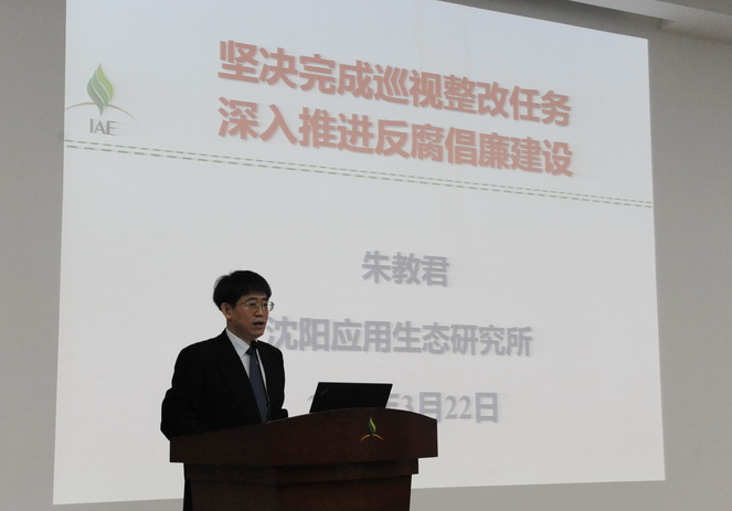 为深入贯彻落实党的十九大、十九届二中、三中和十九届中纪委三次全会精神,以习近平新时代中国特色社会主义思想为指导推动全面从严治党,加强研究所反腐倡廉和党风廉政建设,按照《中国科学院党风廉政建设责任制实施办法》要求,2019年3月22日,中国科学院沈阳应用生态研究所所长朱教君以“坚决完成巡视整改任务,深入推进反腐倡廉建设”为题作反腐倡廉专题报告。研究所班子成员、党委委员、纪委委员、全体职工、老领导代表、研究生代表近180人参加报告会。