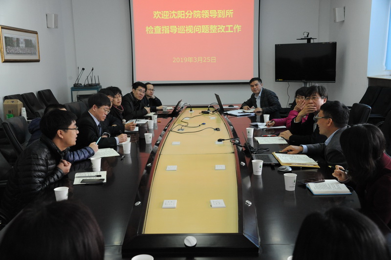 2019年3月25日上午,由沈阳分院分党组副书记、纪检组组长郭秀银带队,分院纪检组副组长、监审室主任周峰,监审室副主任李彩梅等一行四人到我所检查指导巡视问题整改落实工作。沈阳生态所领导班子全体成员、各管理部门负责人参加会议。