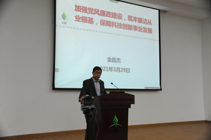 为深入贯彻落实党的十九届五中全会、中纪委五次全会精神,加强研究所党风廉政建设,按照《中国科学院党风廉政建设责任制实施办法》要求,2021年3月29日,沈阳生态所党委书记金昌杰以"加强党风廉政建设,筑牢廉洁从业根基,保障科技创新事业发展"为题作反腐倡廉党课报告。研究所班子成员、党委委员、纪委委员、支部书记和委员、党员、职工、老领导代表、研究生代表近180人出席会议。