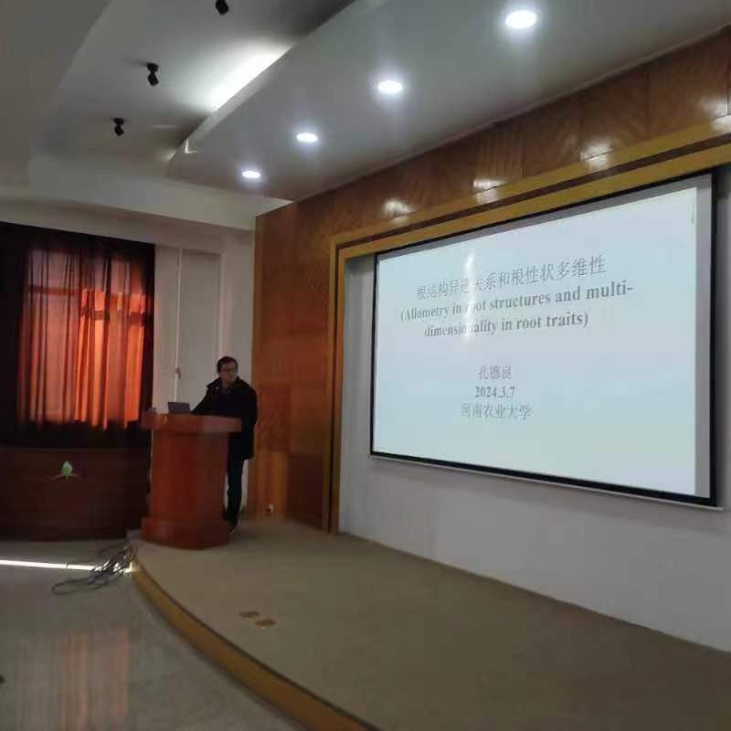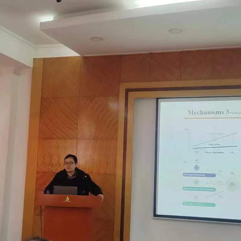 孔德良教授以“根系结构异速关系与根性状多维性”为题,从植物根系结构异速关系格局、机制和意义、植物根系性状的多维性及其功能、根系生态学发展等方面进行了系统介绍,详细论述了根按圆柱体构造对根性状二维性格局调控机制,根皮层和中柱的异速关系以及植物根系与菌根真菌协同变化等内容。精彩的报告引起了与会师生浓厚的兴趣,报告结束后,与会人进行深入讨论和交流。本次报告对青年科研骨干成长起到了良好的推动作用。