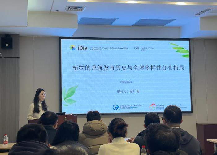 2025年1月8日,我室邀请了德国综合生物多样性研究中心蔡礼蓉博士作报告,报告题目为“植物的系统发育历史与全球多样性分布格局”。我室王正文研究员、袁海生研究员、刘志华研究员、苏振成正高级工程师及所内青年科研工作者、研究生等40余人参加本次学术报告。本次学术报告由沈阳生态所副所长、我室副主任王绪高研究员主持。