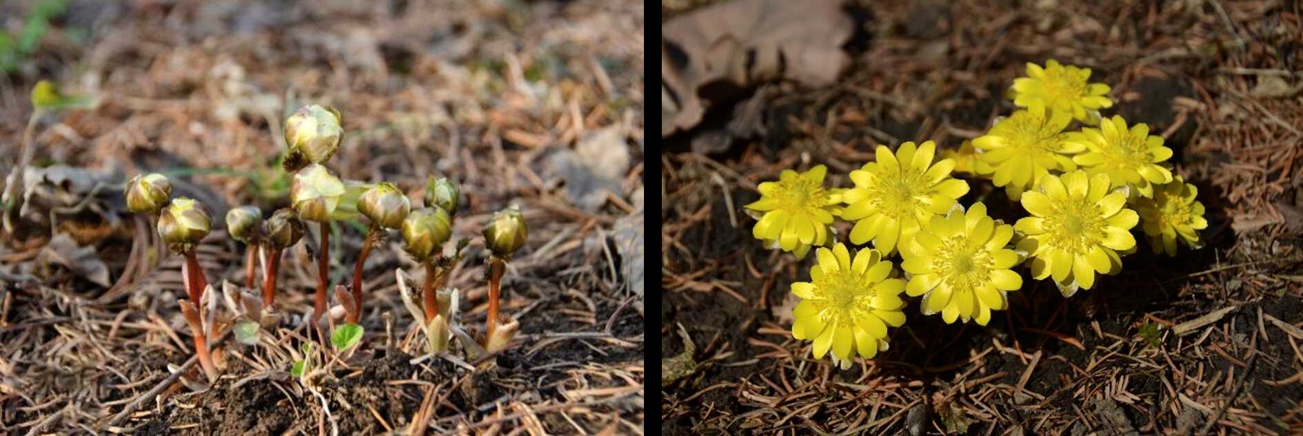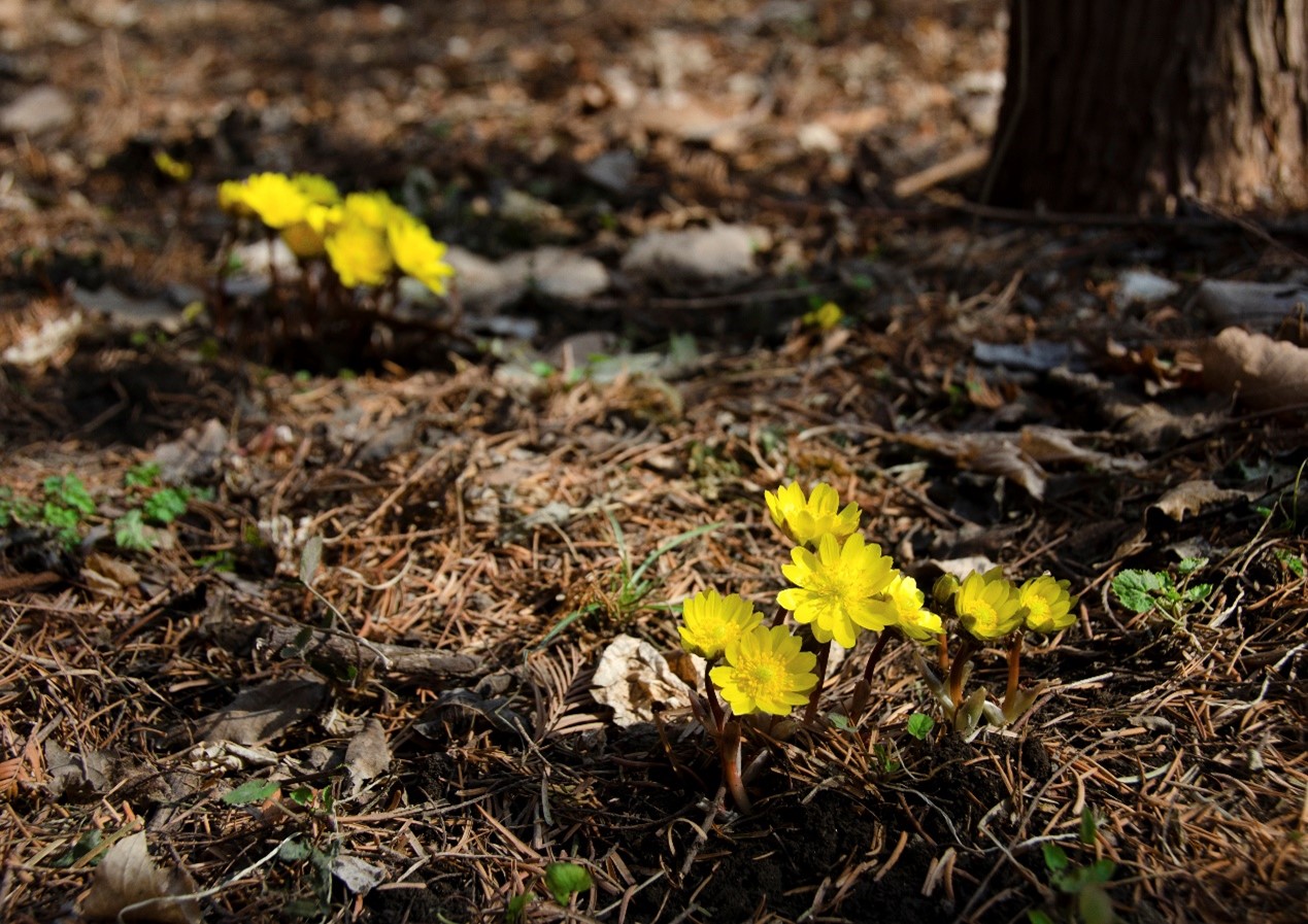 说到北方的“报春使者”,侧金盏花绝对当仁不让。冰雪还未完全消融,就能在林下看到它的身影。它是毛茛科(Ranunculaceae)侧金盏花属(Adonis)植物。相传Adonis是古希腊神话中令爱神阿佛洛狄特(Aphrodite)和冥后珀耳赛福涅(Persephone)神魂颠倒的美少年,以Adonis来命名,足可见侧金盏花的貌美。不过,它初时只是一个个其貌不扬的花苞,藏在落叶堆里。等侧金盏花准备好了,才会在阳光明媚的日子慢慢绽放,一小簇一小簇,在林下像一个个小太阳,非常耀眼。