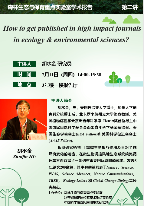 【报告题目】 How to get published in high impact journals in ecology & environmental sciences?