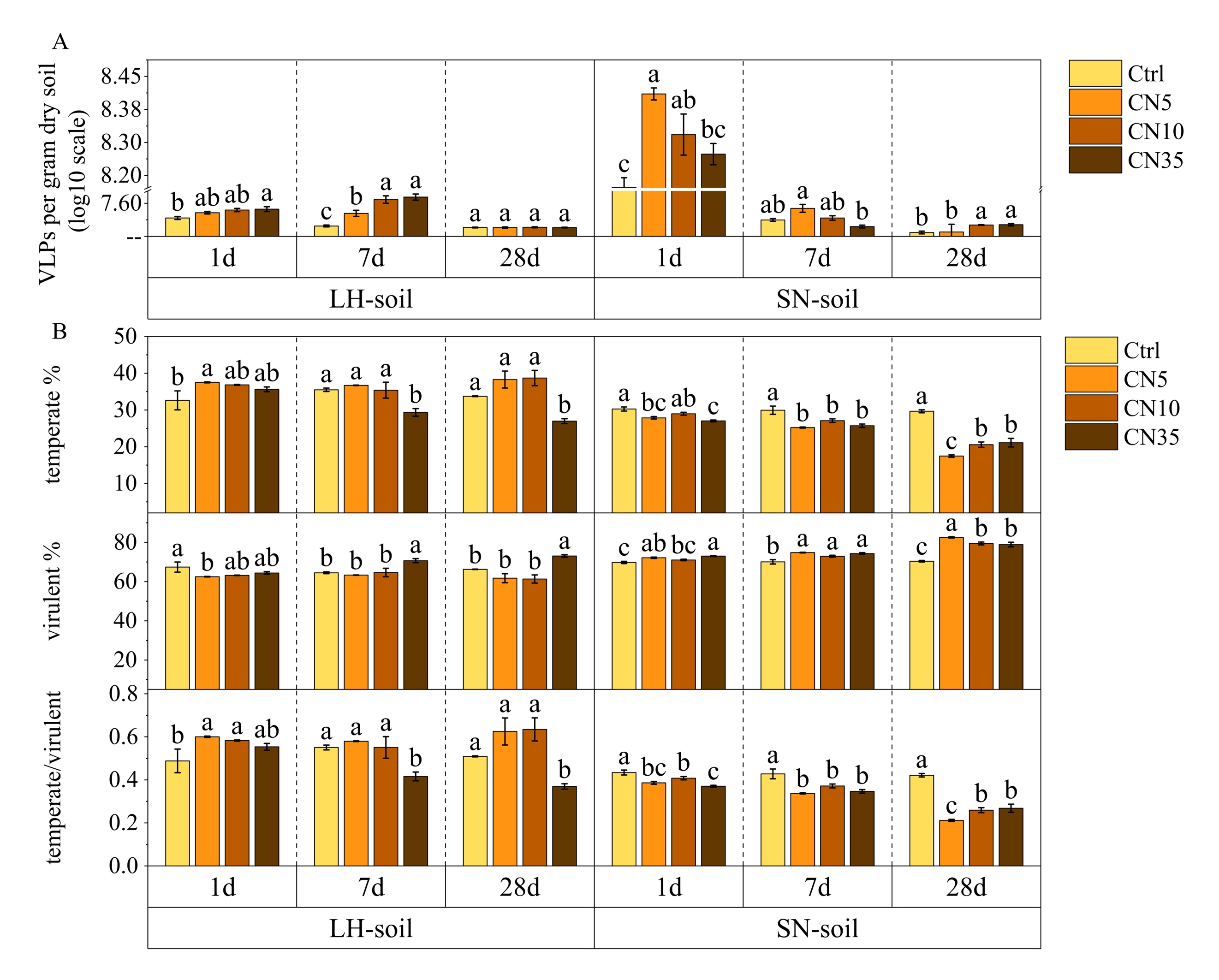土壤是地球上最大的碳库之一,微生物群落通过分解有机质和形成微生物残体驱动着土壤有机碳(SOC)的积累与稳定。然而,作为土壤微生物群落的重要成员,病毒如何影响这一过程还未被深入认识。土壤中碳(C)与氮(N)的比率(C/N比)不仅影响植物生长,也对微生物活动、碳储存与释放起着关键作用。尽管已有研究关注植物输送物(litter)、微生物群落及环境因素对碳/氮循环的影响,但病毒在其中的角色,特别是在不同 C/N 比条件下如何调控微生物与碳释放,尚有较大知识空白。