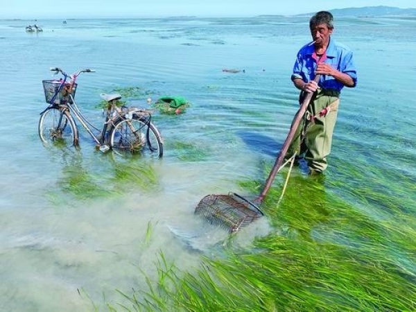 据粗略统计,以我国面积最大的海草床——唐山海草床(3217公顷)为例,它可支撑2.4亿尾鱼和3000亿个无脊椎动物,每年可固定1.2万—2.1万吨二氧化碳,每年可吸收60万人生活污水的营养盐(3.6吨),每年可释放3亿升氧气,其评估价值为每年1.2亿美元。