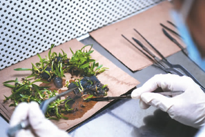 华南国家植物园依托中国科学院华南植物园设立,目前已实现了报春苣苔、杜鹃红山茶、虎颜花、龙州金花茶、猪血木、广东含笑、绣球茜等36种华南珍稀濒危植物的野外回归。图为工作人员对兜兰进行增殖处理。新华社记者 邓华摄