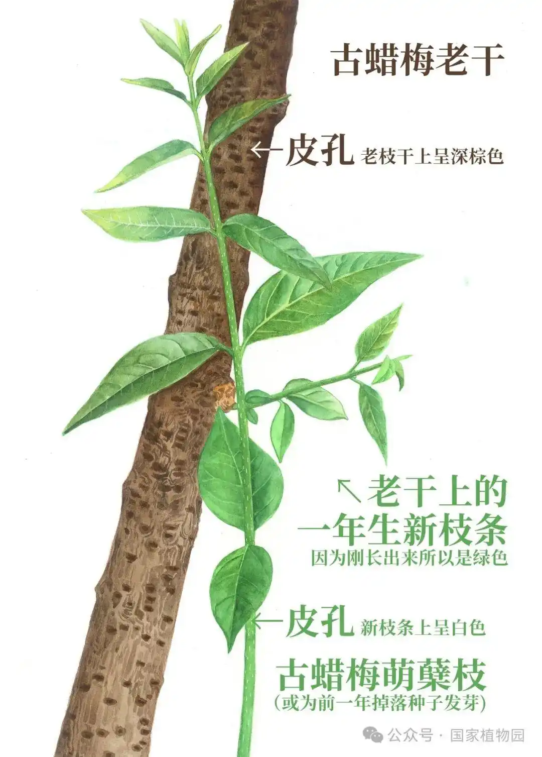 古蜡梅根部萌蘖出新枝(或为前一年掉落种子发芽),为保证古树健康,会将它们剪除。