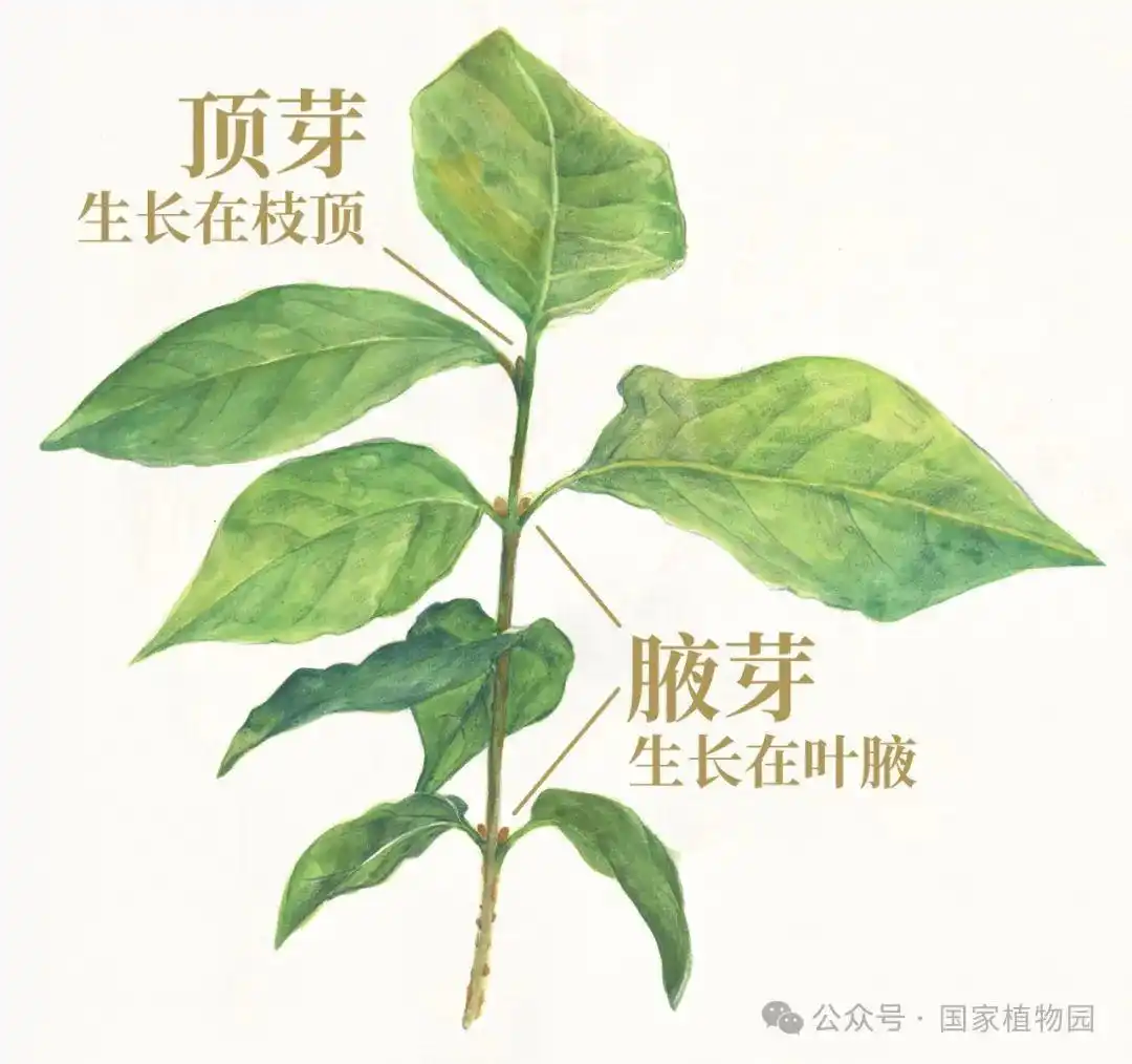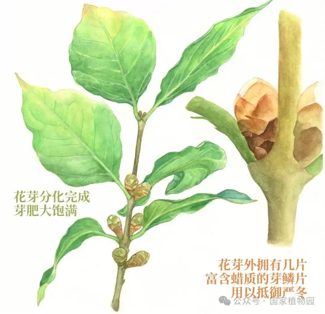 花芽出现,内部花器正在发育中,它们将保持这样的大小直到秋季来临。