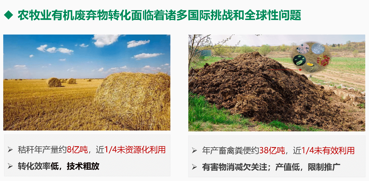 在广袤的农田里,收割后堆积如山的秸秆亟待处理;在规模化的养殖场中,畜禽粪便的处理同样面临挑战。农业农村部2024年的数据显示,我国每年产生 8 亿吨作物秸秆和 38 亿吨畜禽粪便,这些农业废弃物若处理不当会成为污染源,但若利用得当则蕴含着巨大资源价值。