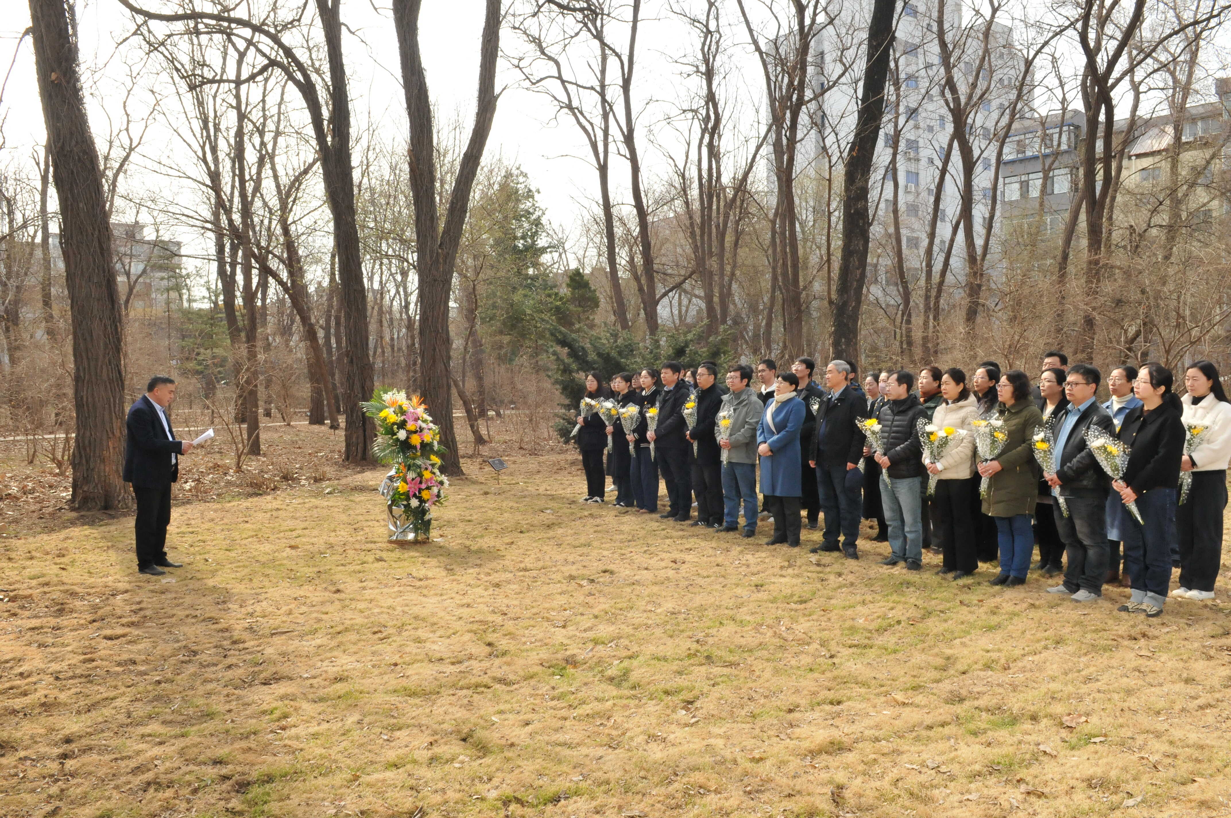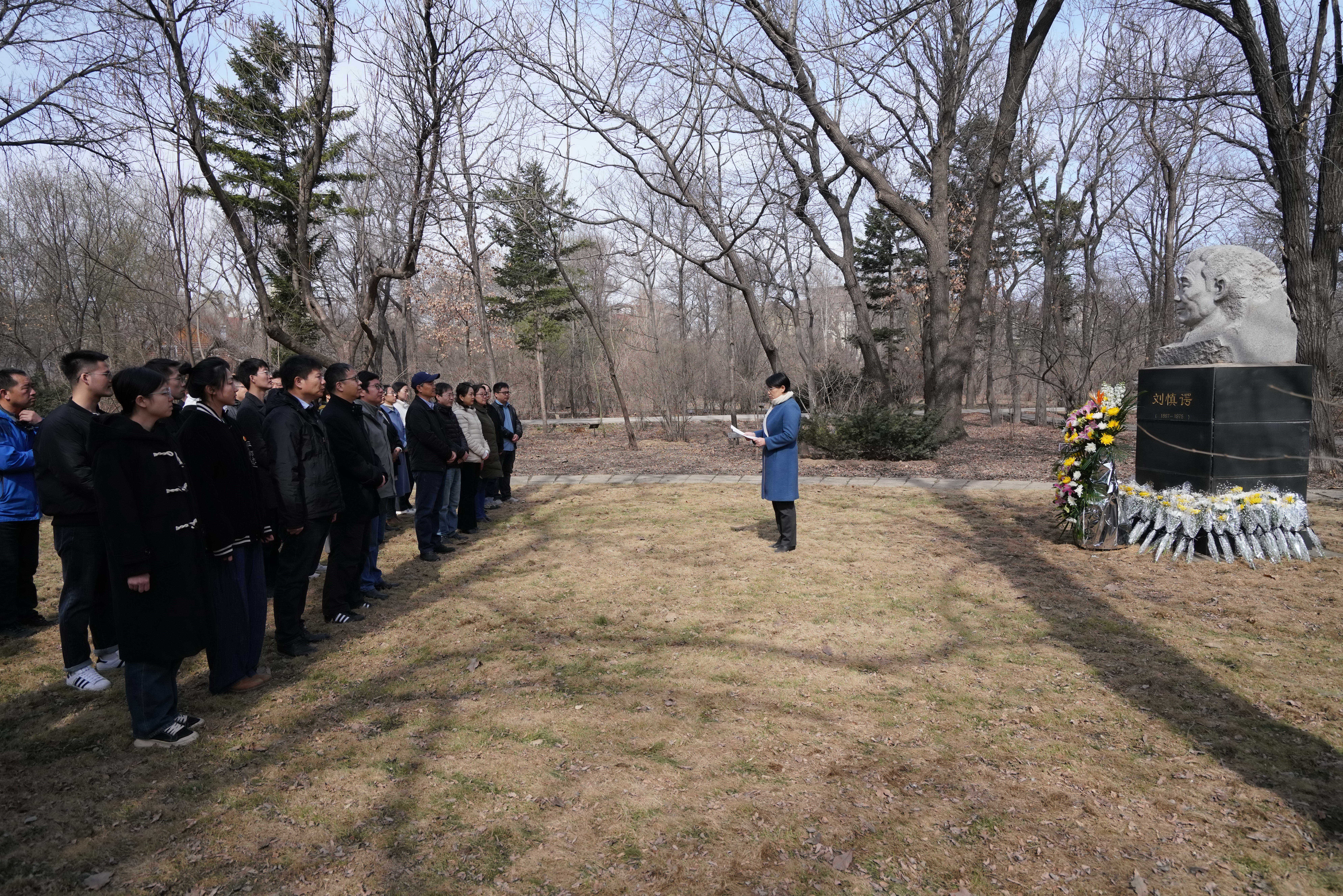 首先,党委副书记、纪委书记郝欣和树木园主任何兴元研究员向刘慎谔先生敬献了花篮,之后现场职工和研究生纷纷向刘慎谔先生雕像敬献了鲜花,并鞠躬致敬,表达他们对刘慎谔先生的崇敬之情和对其精神的追随之意。