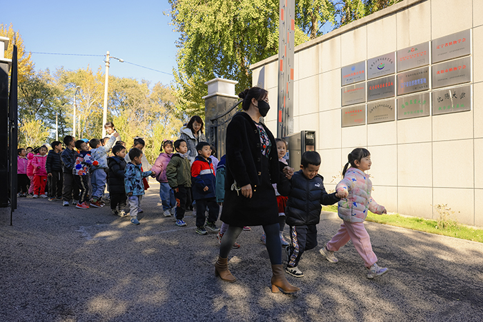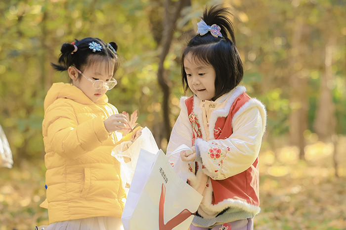 报告结束后,孩子们开启园内探秘之旅。孩子们通过触摸树皮、观察叶脉、对比叶形等,认识了园内红松、水杉等特色树种。最受欢迎的环节当属“以叶识树”,孩子们手持收集到的不同叶片,在老师指导下学会根据叶形、叶缘等特征辨别树种。“这片枫叶像手掌,水杉的叶子排成羽毛状!”现场成为生动的自然课堂。