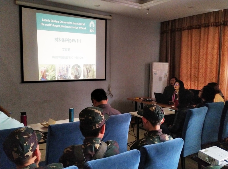 国际植物园保护联盟(BGCI)中国办公室执行主任文香英女士,作了“树木保护的4W1H”的报告,介绍了地球上树木的价值、濒危原因和植物保护战略中的一系列措施,国际植物园保护联盟的情况及其在中国濒危树木保护中做出的贡献等。