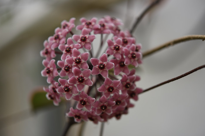 萝藦科(Asclepiadaceae),具有乳汁的多年生草本、藤本;叶对生或轮生,全缘;花两性,聚伞花序。该科植物约2200多种,分布于热带、亚热带,少数温带地区。我国产240余种,分布于西南及东南部为多,少数在西北与东北各省区。该科球兰属植物因其独特的花型被视为吉祥和幸福,广泛用于室内观赏,在园艺和文化中占据重要地位。