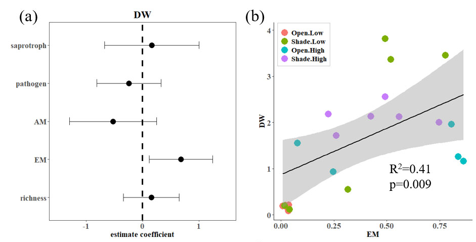 图2:水曲柳幼苗生长与土壤真菌的关系