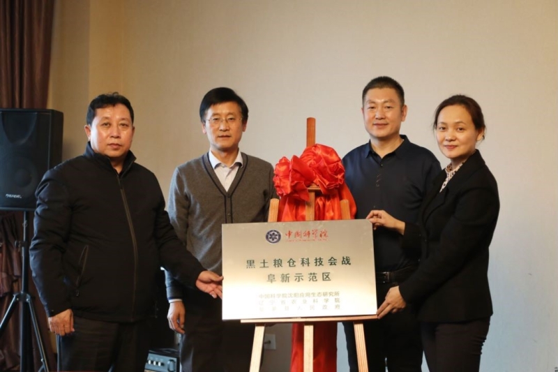 阜蒙县张文远副县长、刘洋副县长、农科院孙占祥副院长、示范区负责人张丽莉为阜新示范区揭牌