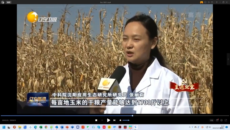 在党的二十大胜利召开之际,2022年10月18日,辽宁卫视对“黑土粮仓科技会战”沈阳示范区“风蚀阻控与节水高效农业模式”的核心技术应用效果进行了报道,沈阳生态所黑土粮仓科技会战沈阳示范区首席科学家张丽莉研究员接受了采访。