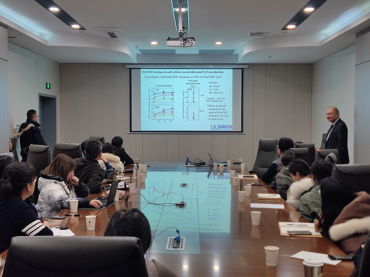 2023年12月12号,加州大学戴维斯分校William R. Horwath教授受我组张丽莉研究员邀请,做题目为“The stability and function of soil carbon fractions: Importance of the mineral associated organic carbon”的报告。