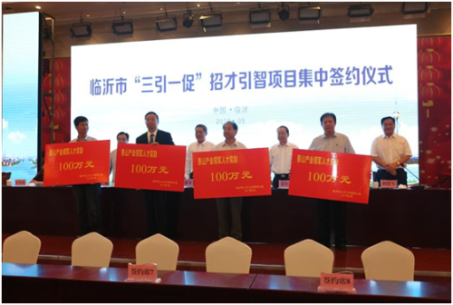 9月6日上午,山东临沂市举行"三引一促"招才引智项目集中签约仪式。